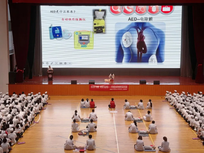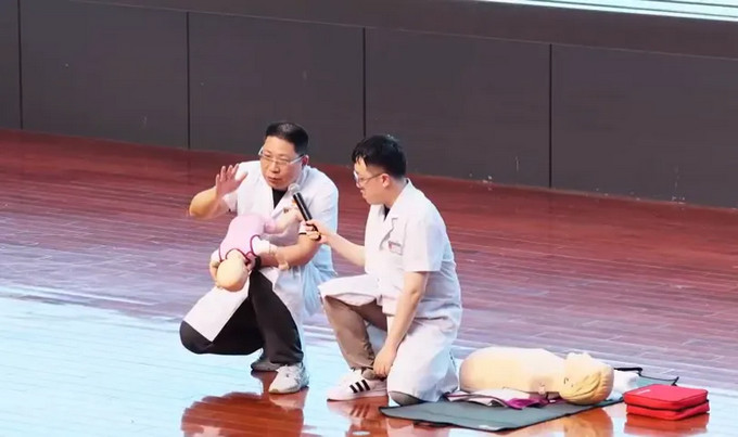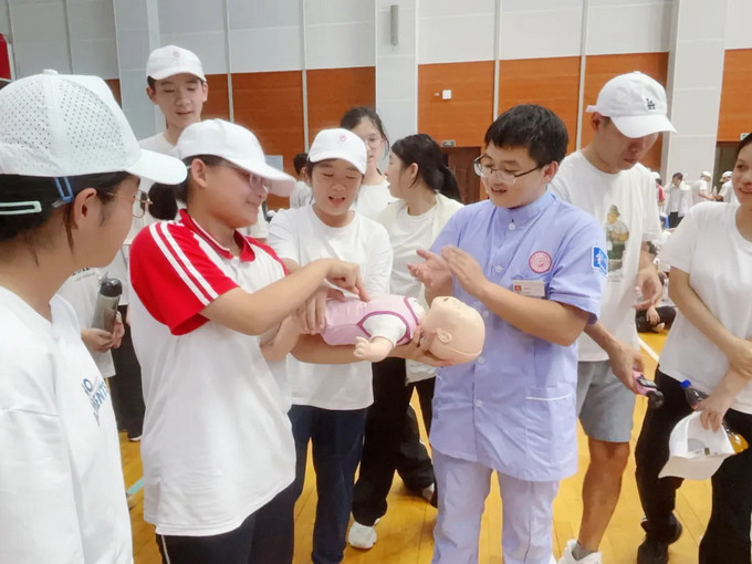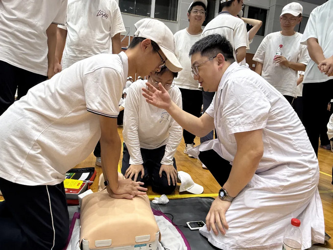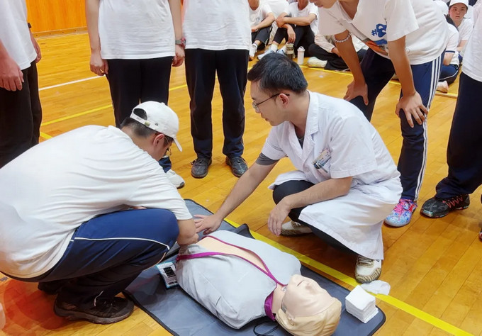 “當(dāng)氣道被異物梗阻時(shí),如果周邊沒有人,也可以自救,自己一手握成拳,另一手包裹住,快速向內(nèi)向上沖擊肚臍與肋骨中間的位置,直到將異物排出為止……”9月16日晚,在福州八中(三江口校區(qū))體育館,一場別開生面的“生命急救課”正在舉行。正值全國科普月之際,本次活動(dòng)由福建中醫(yī)藥大學(xué)附屬人民醫(yī)院教育處臨床技能培訓(xùn)中心、團(tuán)委以及中華中醫(yī)藥學(xué)會(huì)徐順貴科普工作室聯(lián)合舉辦,也是醫(yī)院中醫(yī)養(yǎng)生公益夜校將急救課堂送進(jìn)校園開展科普的一次創(chuàng)新實(shí)踐。 將專業(yè)、實(shí)用的急救技能送進(jìn)校園,為廣大師生帶來一場“沉浸式”科普體驗(yàn)。