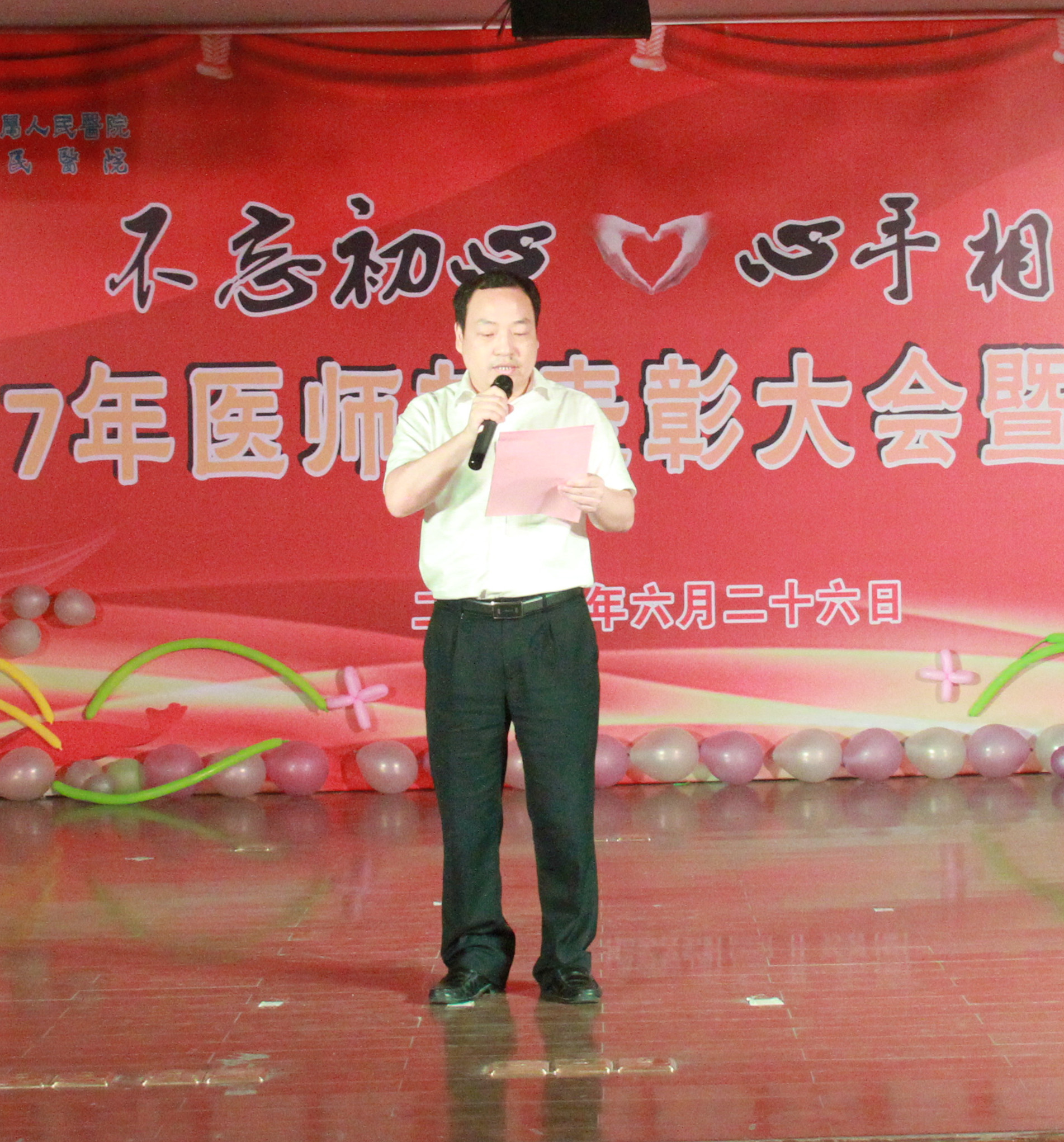 黨委書記、院長(zhǎng)趙紅佳首先代表醫(yī)院領(lǐng)導(dǎo)班子發(fā)表致辭,向全體醫(yī)師同仁們致以誠(chéng)摯的問(wèn)候和崇高的敬意,勉勵(lì)大家繼續(xù)弘揚(yáng)大醫(yī)精誠(chéng)的精神,不忘初心,心手相連,以滿腔的熱情全身心地投入到為病人服務(wù)中,為醫(yī)院新一輪跨躍式發(fā)展的宏圖偉業(yè)貢獻(xiàn)力量。