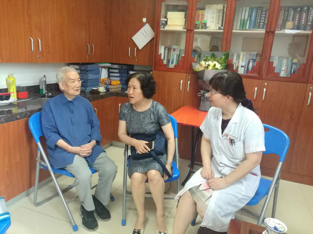 7月8日上午,《中國中醫(yī)藥報》??亢O贾魅魏托烀扔浾呱W臨附屬人民醫(yī)院進(jìn)行全國名中醫(yī)的采編工作。作為資深編審、教授、副主任醫(yī)師、碩士生導(dǎo)師和媒體人,海霞主任在肛腸科名中醫(yī)工作室對醫(yī)院全國名中醫(yī)、中醫(yī)肛腸科的創(chuàng)始人陳民藩主任醫(yī)師進(jìn)行了專訪。