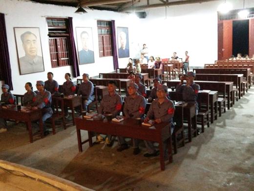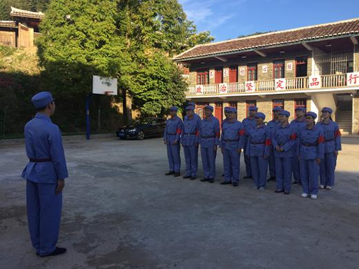 8月26日晚7時,我院一行到達(dá)水尾村,吃過紅軍飯后,觀看了由當(dāng)?shù)厝罕娮跃?、自?dǎo)、自演的紅軍戲。8月27日6時三十分,在紅色歌聲中我們舉行了升旗儀式,參加了紅軍隊列訓(xùn)練,并參觀了紅軍革命舊址紅軍醫(yī)院、紅軍兵工廠、紅軍銀行等,接受了一次紅色文化的洗禮。