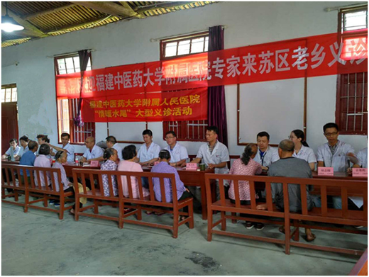 為貫徹落實省紀(jì)委領(lǐng)導(dǎo)關(guān)于精準(zhǔn)扶貧、服務(wù)社會的精神。2017年8月26日,我院組建了一支包括骨傷科、眼科、耳鼻喉科、針灸科、心內(nèi)科、內(nèi)分泌科、中醫(yī)內(nèi)科、護(hù)理等多學(xué)科的中共黨員醫(yī)療專家隊,驅(qū)車幾百公里到革命蘇區(qū)基點村-建寧縣客坊鄉(xiāng)水尾村,開展紅色文化教育活動,并為當(dāng)?shù)厝罕娺M(jìn)行健康咨詢、疾病診治、健康宣教等醫(yī)療志愿服務(wù),讓蘇區(qū)人民在家門口就能享受到優(yōu)質(zhì)的省級醫(yī)療服務(wù)。