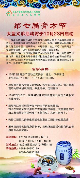 第七屆膏方節(jié)大型義診活動(dòng)將于10月23日啟動(dòng)