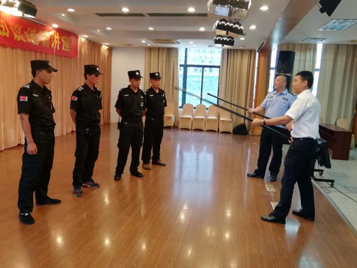 接著王警官進行了現(xiàn)場培訓(xùn),演示了警用鋼叉等防恐器械的使用方法,利用器械制服嫌疑人的技能、要點和注意事項,并通過親身示范,傳授一對一運用防暴器械制服暴恐分子的方法?,F(xiàn)場模擬與暴恐分子對峙時,如何正確使用反恐器械迅速地制服暴恐分子。