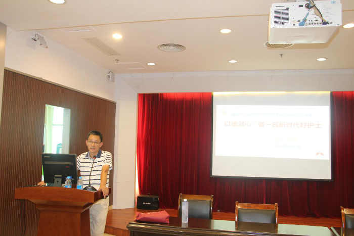 7月27日下午,由院黨委主辦、護(hù)理部承辦的道德講堂在我院2號(hào)樓13層會(huì)議室開講,閩江大學(xué)馬克思主義學(xué)院的黃海林副教授為全院護(hù)理人員,作了題為“以德潤(rùn)心——做一名新時(shí)代的好護(hù)士”的講座。