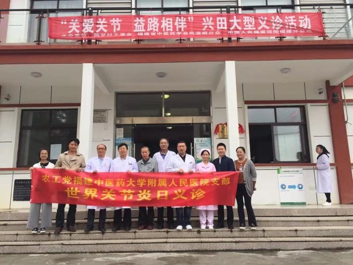 在 “10.12世界關(guān)節(jié)炎日”和“10.20世界骨質(zhì)疏松日”來臨之際,為助力武夷山市健康小鎮(zhèn)建設(shè)示范鎮(zhèn)興田鎮(zhèn)建設(shè),農(nóng)工黨福建省人民醫(yī)院支部聯(lián)合福建省中醫(yī)藥學(xué)會風(fēng)濕病分會、武夷山圓夢村干事會和中國人民健康保險福建分公司在興田鎮(zhèn)衛(wèi)生院舉行“關(guān)愛關(guān)節(jié)、益路相伴”大型義診活動。