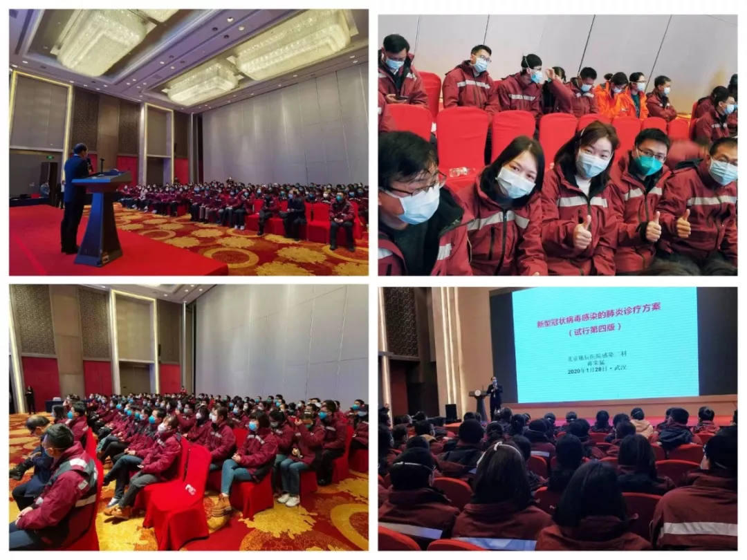 省人民醫(yī)療隊(duì)的對(duì)接醫(yī)院是武漢市中心醫(yī)院,該院距離華南海鮮市場(chǎng)2.5公里,是最早發(fā)現(xiàn)新型冠狀病毒感染肺炎病人的醫(yī)院,也是疫情最前沿的“火線(xiàn)”。當(dāng)天下午,隊(duì)長(zhǎng)張新安主任赴前線(xiàn)考察院感工作,雙方就援助具體事宜進(jìn)行了對(duì)接和安排;在晚上的培訓(xùn)會(huì)上,張新安主任與同仁們分享經(jīng)驗(yàn),傳經(jīng)送寶。