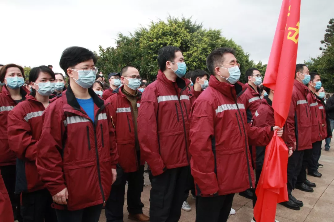 2月15日上午,由院長(zhǎng)陳捷親自帶隊(duì),醫(yī)院21名白衣勇士迅速集結(jié),準(zhǔn)備出征,全院送行。