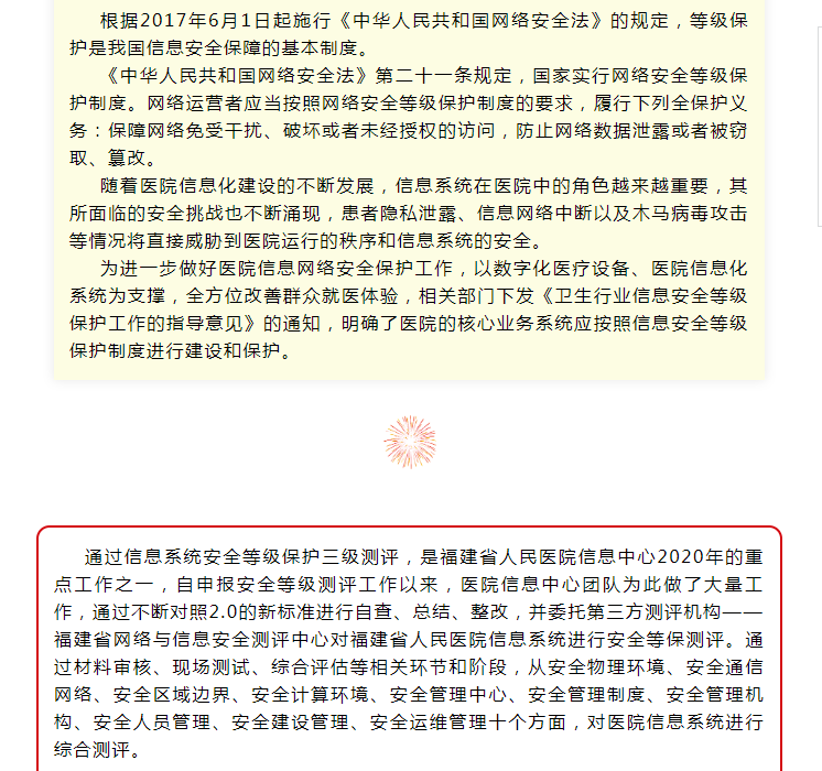 福建省人民醫(yī)院以高分通過信息安全等級保護2.0測評