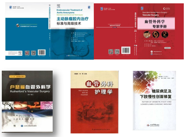 2022年-2023年,科室作為主譯單位,組織全國(guó)多所醫(yī)學(xué)院校專家學(xué)者編譯并出版了《主動(dòng)脈瘤腔內(nèi)治療-標(biāo)準(zhǔn)與高級(jí)技術(shù)》、《牛津血管外科專家手冊(cè)》兩本英文學(xué)術(shù)著作,收到業(yè)內(nèi)廣泛好評(píng)??剖页蓡T還參譯/編《羅斯福血管外科學(xué),第7版》、《糖尿病足及下肢慢性創(chuàng)面修復(fù)》第一版、《血管外科護(hù)理學(xué)》第一版、《血管通路中心靜脈介入診斷及治療學(xué)》第一版等著作。此外,科室成員擔(dān)任《血管與腔內(nèi)血管外科雜志》通訊編委,《中華實(shí)驗(yàn)外科雜志》、《中華創(chuàng)傷外科雜志英文版》審稿人。此外,科主任夏印參與編寫了《原發(fā)性下肢淺靜脈曲張專家共識(shí)》(2021版),2023年受中國(guó)醫(yī)師協(xié)會(huì)血管外科分會(huì)邀請(qǐng)參與編寫《中國(guó)靜脈曲張?jiān)\療指南》。