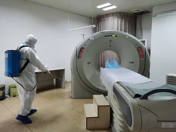 后勤人員對CT檢查室進(jìn)行終末消殺