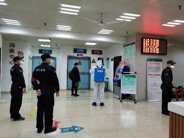 安保人員對CT候診區(qū)進(jìn)行臨時管制