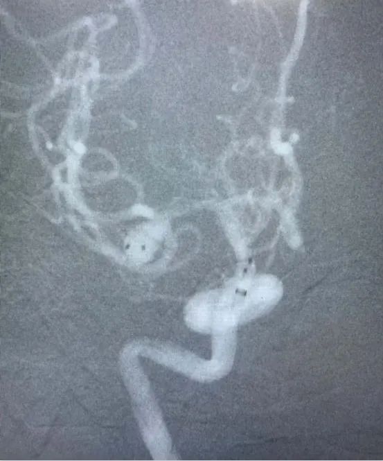 近日,省人民醫(yī)院神經(jīng)外科為一位高齡動脈瘤患者施行了介入治療,成功栓塞了破裂的大腦中動脈瘤?;颊咭蛲话l(fā)暈厥后頭痛不適入院,急診行顱腦CT檢查提示蛛網(wǎng)膜下腔出血,行顱腦CTA檢查后證實患者存在右側(cè)大腦中動脈瘤?;颊吒啐g,既往基礎(chǔ)病多,高血壓病、糖尿病、冠心病、雙側(cè)頸動脈硬化、雙側(cè)腹股溝疝術(shù)后等,手術(shù)風(fēng)險較大,經(jīng)家屬簽字同意后,當(dāng)日急診全麻下行“右側(cè)大腦中動脈瘤介入栓塞術(shù)”,術(shù)中見血管迂曲明顯,導(dǎo)管到位艱難,經(jīng)過努力,手術(shù)順利結(jié)束。術(shù)后予多次腰椎穿刺術(shù)釋放血性腦脊液,患者頭痛頭暈癥狀漸緩解?;颊咦≡褐委?/span>10天后順利康復(fù)出院,未留后遺癥。