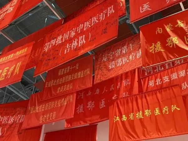 抗疫展中懸掛的醫(yī)療隊(duì)隊(duì)旗