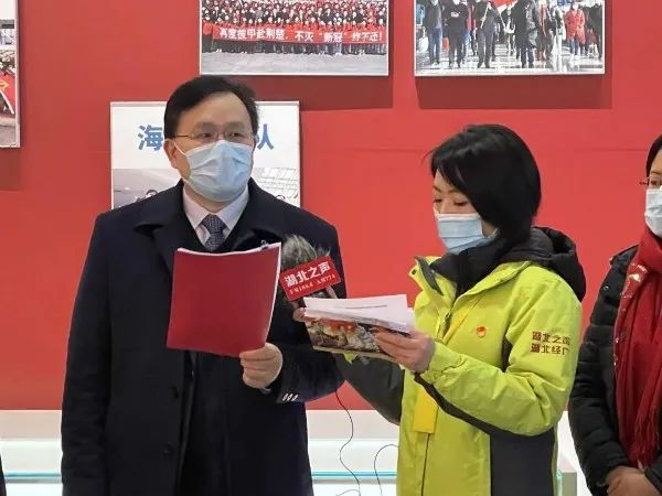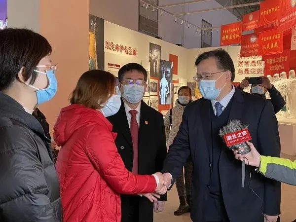 受湖北之聲的邀請,福建援鄂醫(yī)療隊(duì)臨時(shí)黨支部書記、領(lǐng)隊(duì),福建省人民醫(yī)院黨委副書記、院長陳捷教授,福建省人民醫(yī)院護(hù)士長黃錦燕、護(hù)士施劍丹、中日友好醫(yī)院醫(yī)生馬建龍、安碩研回到了武漢,在展覽現(xiàn)場,戰(zhàn)友們的雙手再次緊緊地握在了一起。