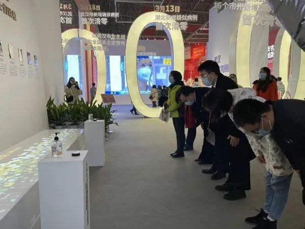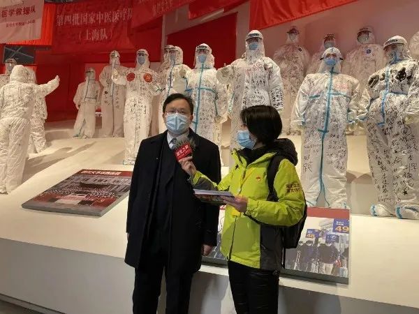 華中科技大學(xué)同濟(jì)醫(yī)學(xué)院附屬同濟(jì)醫(yī)院光谷院區(qū)常務(wù)副院長、光谷方艙醫(yī)院黨委副書記兼院長唐洲平教授和他的同事們來到了展區(qū)現(xiàn)場,一件件簽滿醫(yī)護(hù)姓名的防護(hù)服展品,懸掛在天花板上空各個(gè)醫(yī)療隊(duì)的隊(duì)旗勾起了唐院長的回憶。更讓他為之驚喜并熱淚盈眶的是,曾經(jīng)與他一起為武漢拼命的戰(zhàn)友們又回來了。
