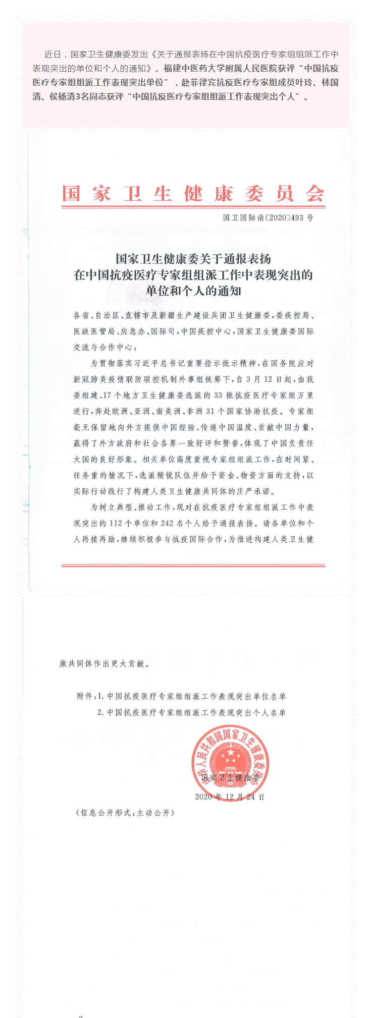 喜訊 | 福建中醫(yī)藥大學(xué)附屬人民醫(yī)院集體及個(gè)人獲國(guó)家衛(wèi)生健康委通報(bào)表?yè)P(yáng)