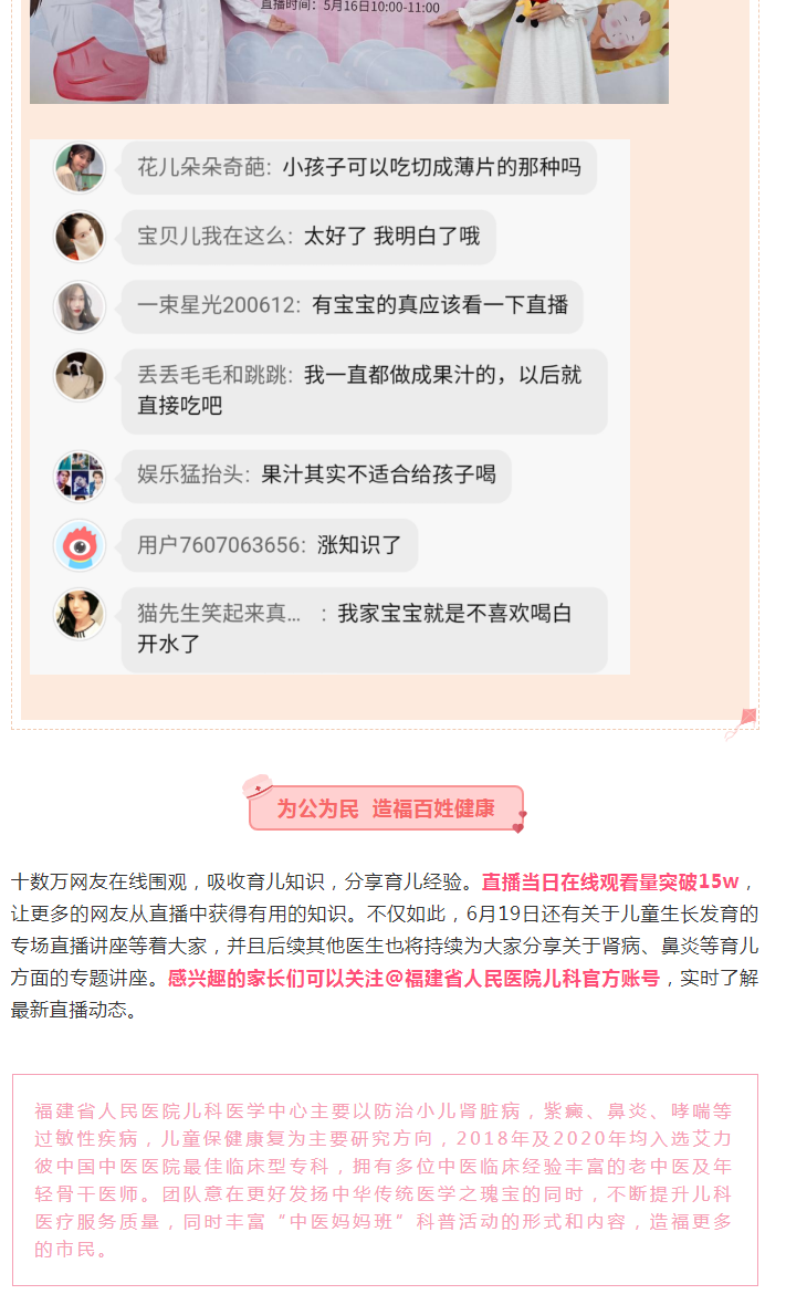 兒童保健|中醫(yī)媽媽班 與您童行 福建省人民醫(yī)院健康科普“云直播”第二期開播啦