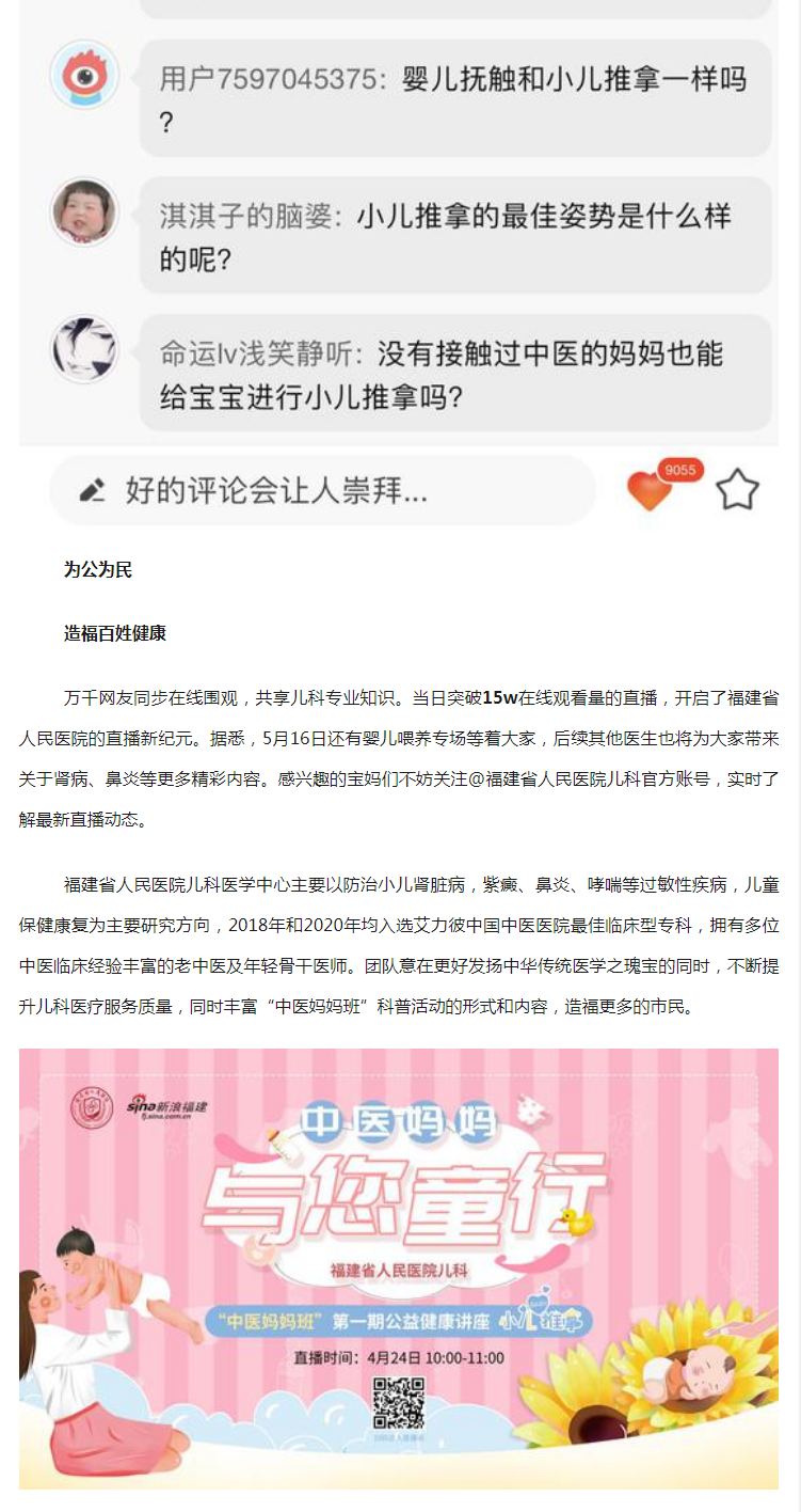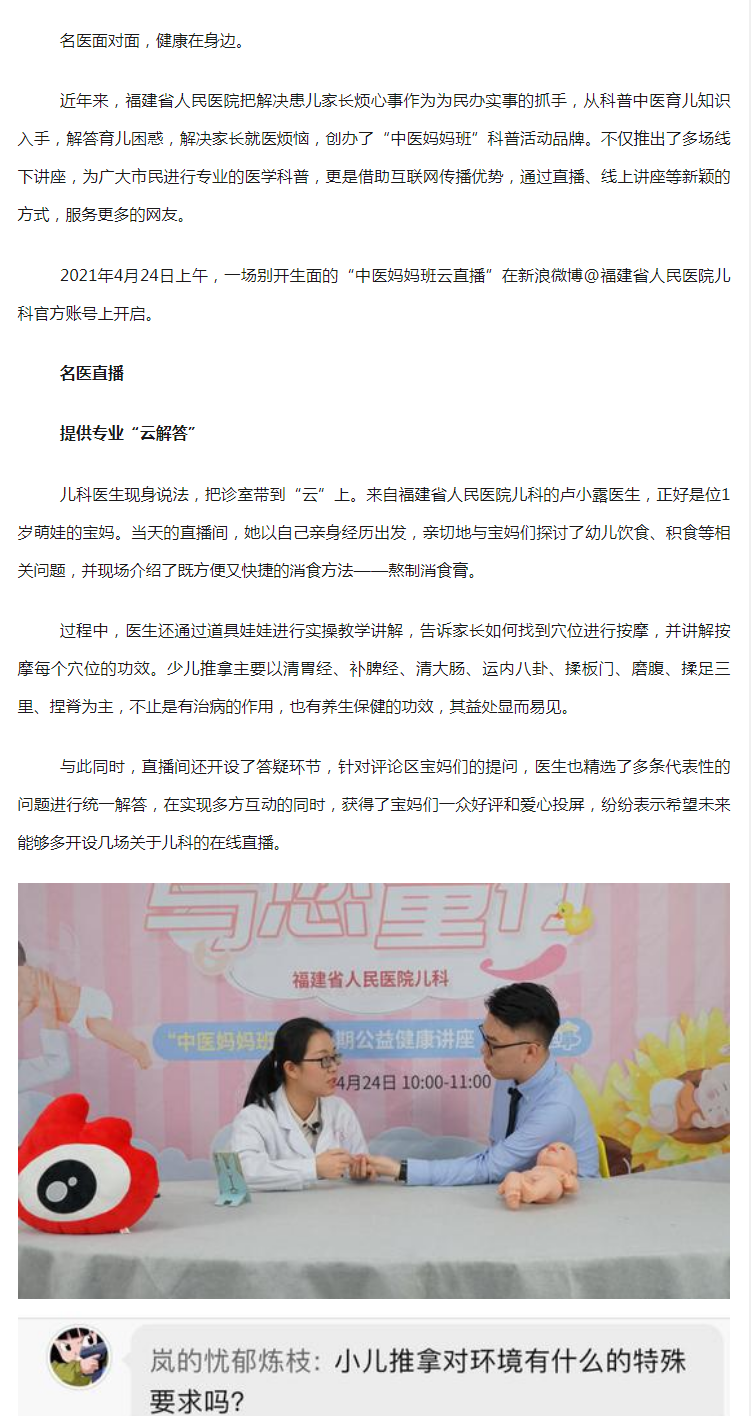 兒童保健|中醫(yī)媽媽班-與您童行-福建省人民醫(yī)院健康科普“云直播”開播啦!