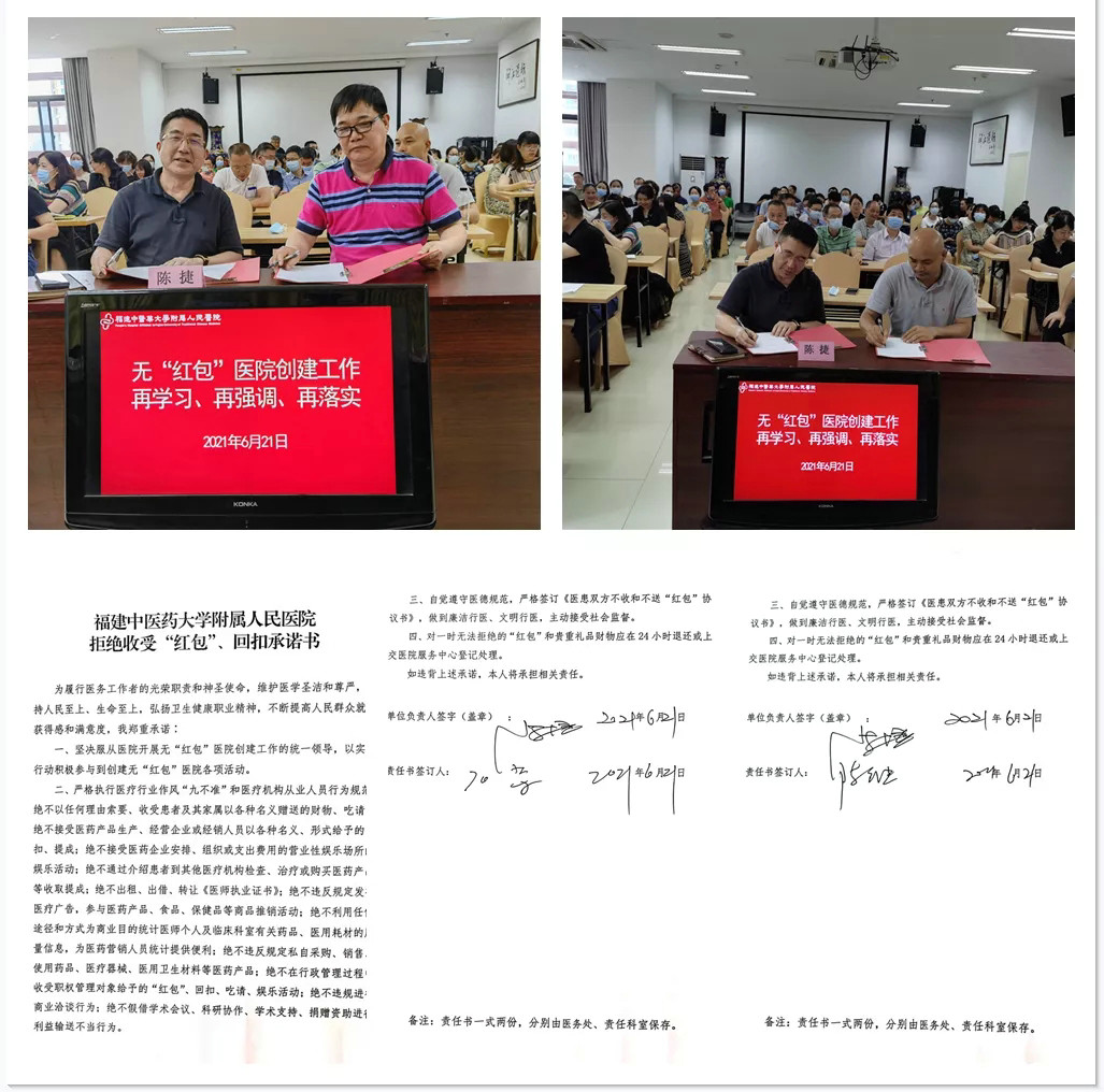 2021年4月,福建省衛(wèi)健委印發(fā)了《關(guān)于開(kāi)展創(chuàng)建無(wú)“紅包”醫(yī)院活動(dòng)工作的通知》,在全省范圍內(nèi)開(kāi)展創(chuàng)建無(wú)“紅包”醫(yī)院活動(dòng)。福建省人民醫(yī)院作為福建省內(nèi)第一批創(chuàng)建無(wú)“紅包”醫(yī)院之一,將創(chuàng)建無(wú)“紅包”醫(yī)院作為2021年落實(shí)黨風(fēng)廉政建設(shè)和行風(fēng)建設(shè)主體責(zé)任的重要任務(wù),踐行醫(yī)者初心,持續(xù)提升服務(wù)品質(zhì),營(yíng)造風(fēng)清氣正的醫(yī)療氛圍,進(jìn)一步提升患者就醫(yī)獲得感和滿意度,推動(dòng)醫(yī)院健康高質(zhì)量發(fā)展。