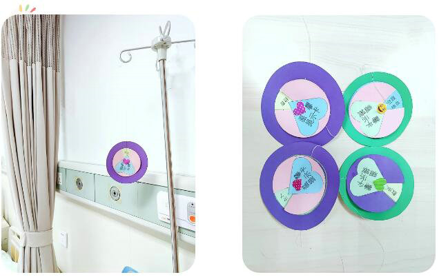“會(huì)動(dòng)”的提示牌是不是更能吸引病人、醫(yī)護(hù)的注意呢?于是,護(hù)士們巧手制作了轉(zhuǎn)盤模型的溫馨提示牌,將“會(huì)動(dòng)”的溫馨提示牌安裝在輸液架上。