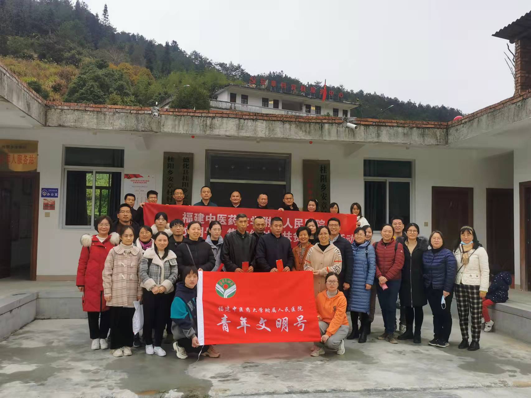 為認(rèn)真貫徹落實(shí)黨的十九屆六中全會精神和省第十一次黨代會精神,大力弘揚(yáng)奉獻(xiàn)友愛互助進(jìn)步的志愿精神,廣泛開展志愿服務(wù)關(guān)愛行動,助力鄉(xiāng)村振興,1月9日,我院組織相關(guān)黨支部、國家級青年文明號、省級青年文明號以及省直級青年文明集體青年志愿者35名,前往泉州市德化縣桂陽鄉(xiāng)開展“佳節(jié)尚文明 志愿關(guān)愛行”義診、結(jié)對幫扶貧困戶和紅色研學(xué)活動。