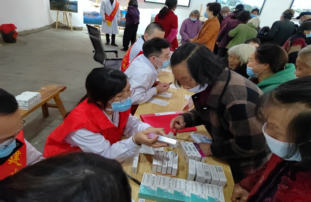 隨后,青年志愿者們在桂陽鄉(xiāng)黨群驛站便民服務(wù)點(diǎn)開展義診活動,心血管內(nèi)科、內(nèi)分泌科、骨科、泌尿外科、康復(fù)科、兒科、中醫(yī)護(hù)理、藥學(xué)等醫(yī)護(hù)藥團(tuán)隊(duì)為桂陽鄉(xiāng)9個(gè)村村民提供一對一醫(yī)療咨詢,測血糖、量血壓、心肺聽診、答疑解惑、健康指導(dǎo)等,現(xiàn)場前來咨詢、問診的群眾絡(luò)繹不絕。青年志愿者們熱情、耐心地問診查體,提出診治方案,開具用藥處方,免費(fèi)發(fā)放藥品,并對用藥、保健、飲食等方面給予指導(dǎo)題。義診活動受到了當(dāng)?shù)卣⑷罕姷臒崃覛g迎,并受到了當(dāng)?shù)匦侣劽襟w的關(guān)注、采訪和報(bào)道。