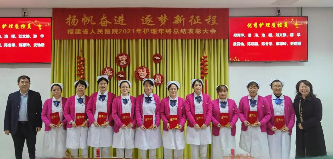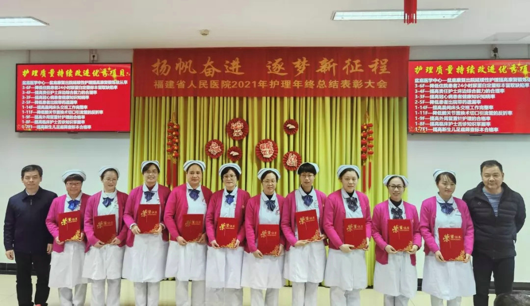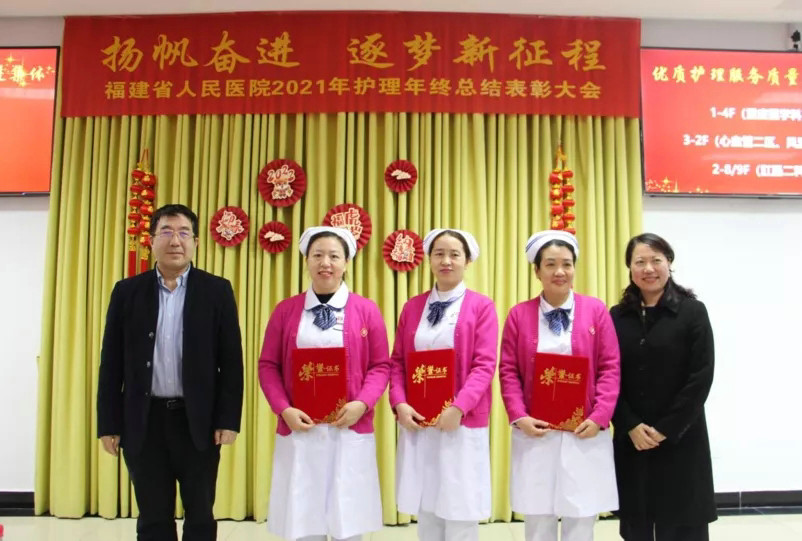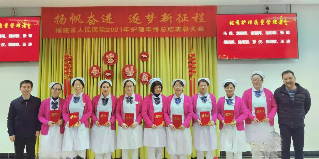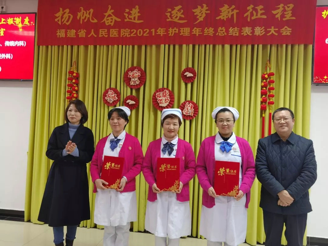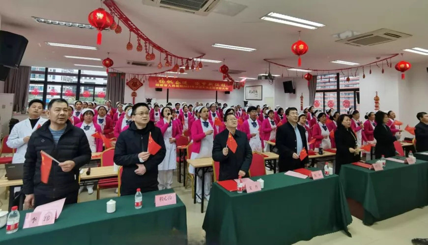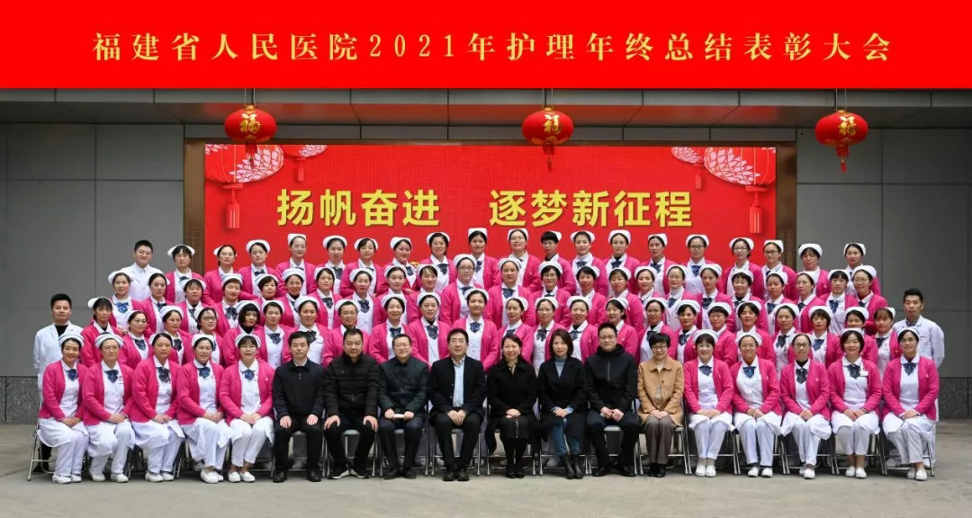 2022年1月17日,福建中醫(yī)藥大學附屬人民醫(yī)院2021年護理工作總結(jié)暨表彰大會在1號樓3層會議室隆重舉行。醫(yī)院領(lǐng)導、各位職能科長及科主任出席此次大會,參會的還有護理部全體成員及各科室護士長、護士代表們。大會在全場護士齊唱《沒有共產(chǎn)黨就沒有新中國》中拉開了序幕。