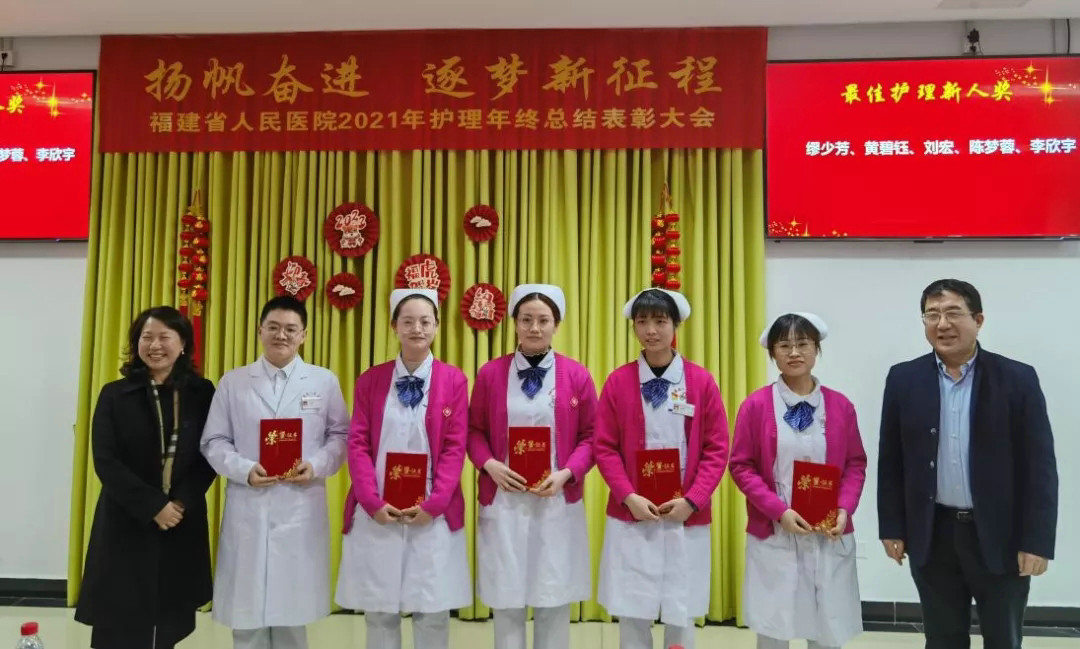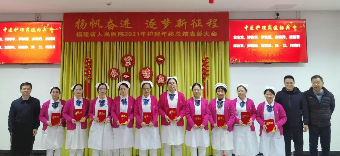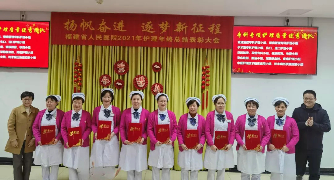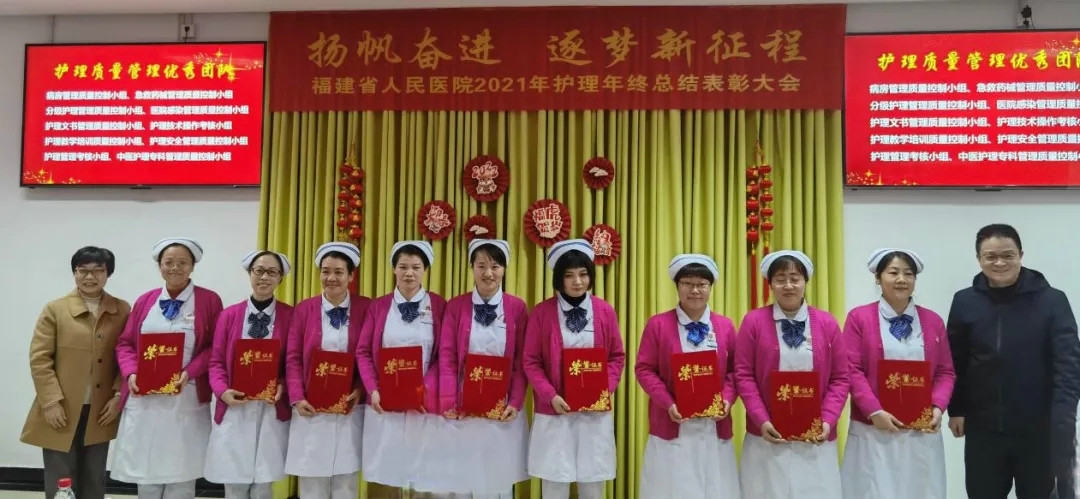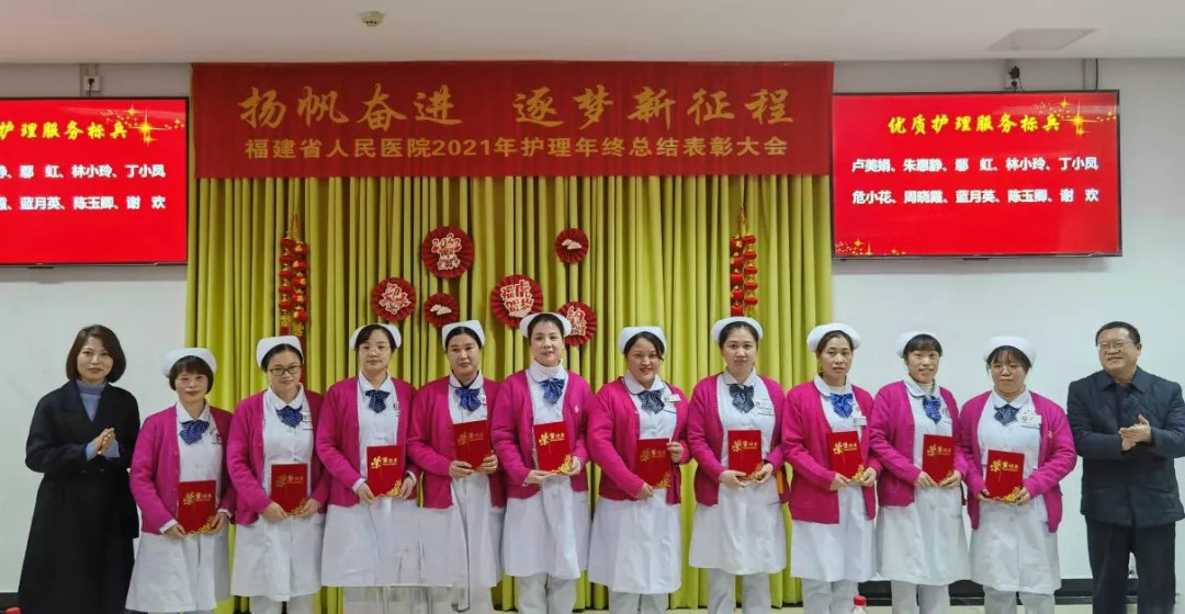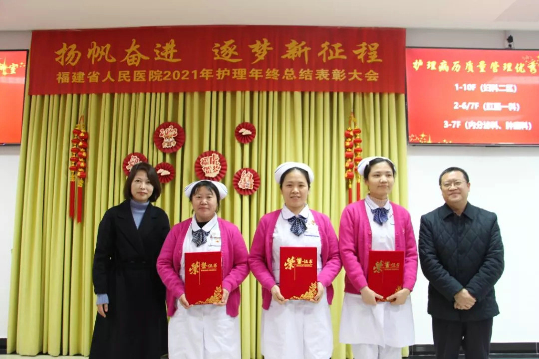 2022年1月17日,福建中醫(yī)藥大學附屬人民醫(yī)院2021年護理工作總結(jié)暨表彰大會在1號樓3層會議室隆重舉行。醫(yī)院領(lǐng)導、各位職能科長及科主任出席此次大會,參會的還有護理部全體成員及各科室護士長、護士代表們。大會在全場護士齊唱《沒有共產(chǎn)黨就沒有新中國》中拉開了序幕。