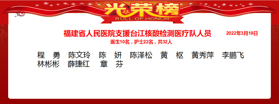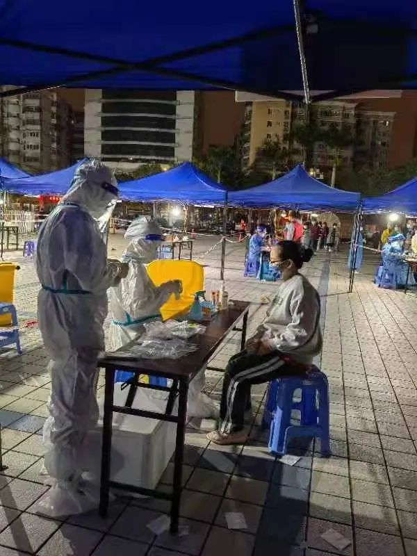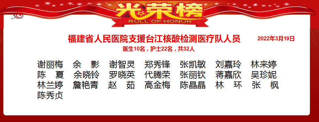 3月19日,福建省人民醫(yī)院派出32名支援臺江區(qū)核酸檢測醫(yī)療隊員參加核酸檢測工作。