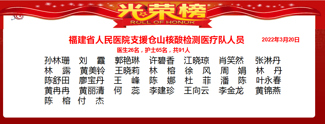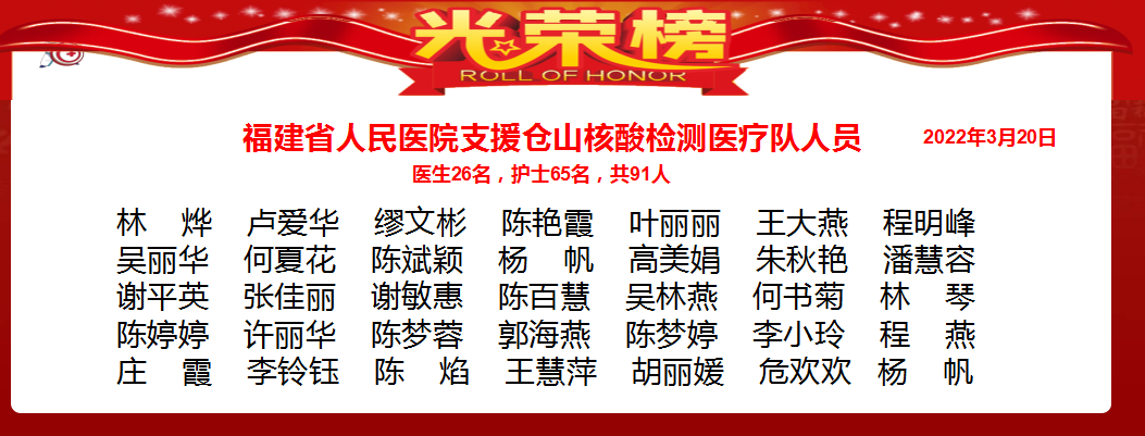 3月20日清晨,福建省人民醫(yī)院派出91名支援倉山區(qū)核酸檢測醫(yī)療隊員參加核酸檢測工作。