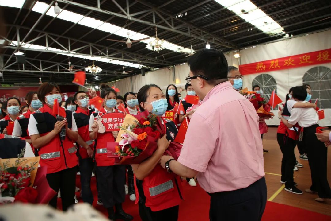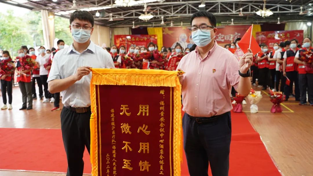 6月10日,福建中醫(yī)藥大學(xué)附屬人民醫(yī)院院長陳捷率領(lǐng)醫(yī)院領(lǐng)導(dǎo)班子及全院中層干部為援滬醫(yī)療隊員獻上鮮花,以最隆重的方式來迎接“最美逆行者”回家。歡迎儀式由程心玲副院長主持。