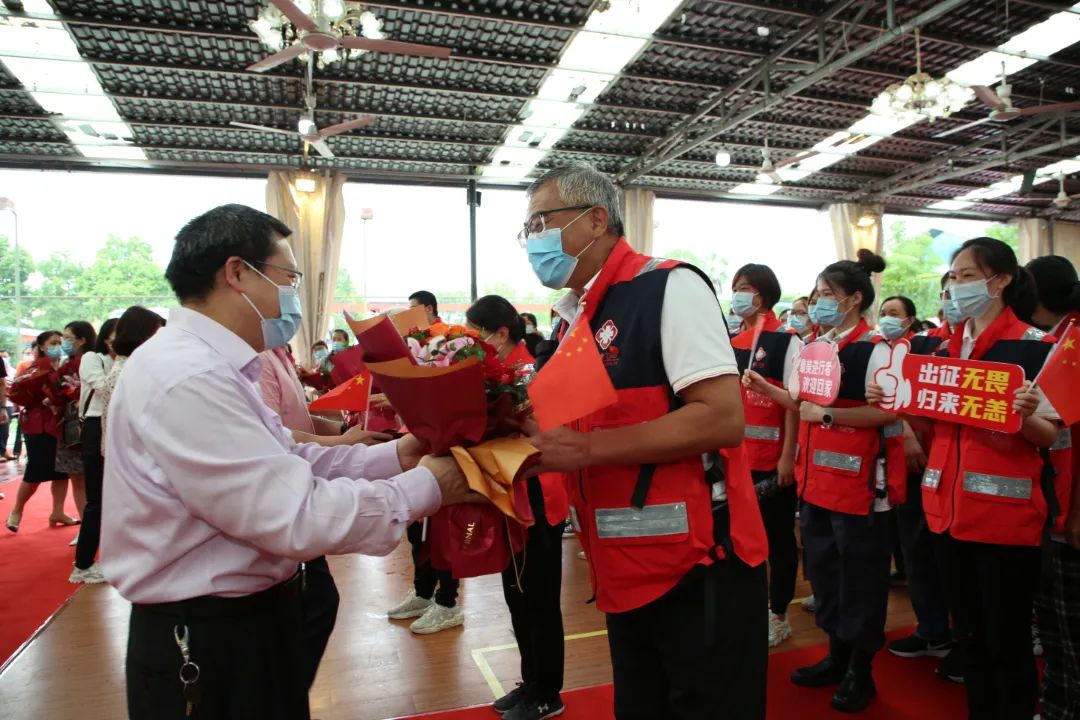院領(lǐng)導(dǎo)班子及中層干部為援滬醫(yī)療隊員獻上鮮花