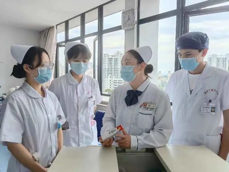 何書(shū)菊護(hù)師(右二)重返崗位,為臨床實(shí)習(xí)生講解搶救藥品知識(shí)