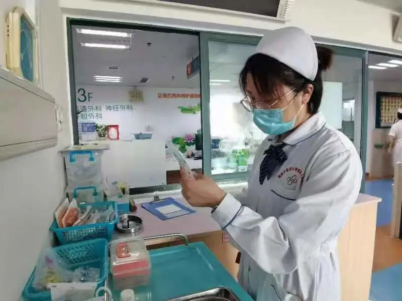 謝世娟主管護(hù)師在重癥監(jiān)護(hù)病房開(kāi)始患者的日常護(hù)理工作