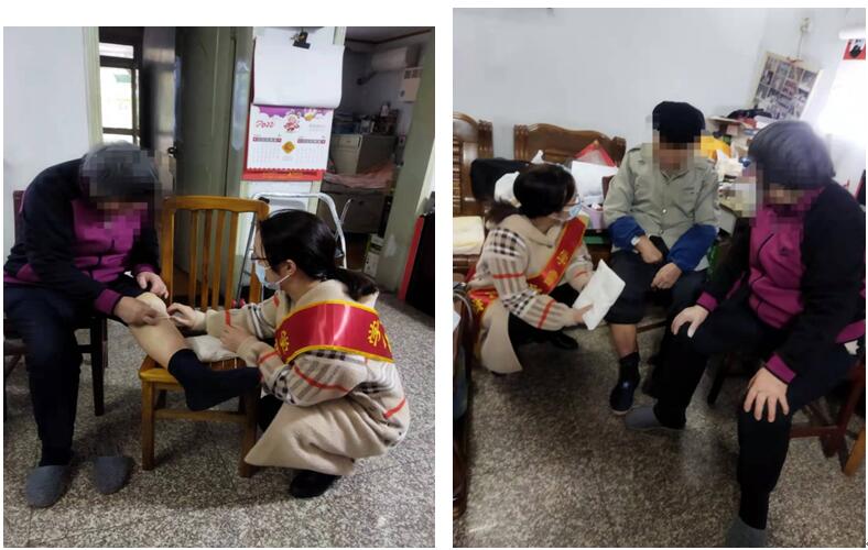 在3月4日上午與洋中花園社區(qū)對(duì)接后充分了解到該患者是一名前列腺癌、高血壓、糖尿病、冠心病、雙側(cè)耳聾、右側(cè)肢體偏癱、糖尿病足,平素生活無法自理,配偶近期意外摔傷至右腿活動(dòng)受限,急需一些特殊醫(yī)療服務(wù)。本著有需必到的宗旨,依托自身的職責(zé)和醫(yī)院資源進(jìn)行入戶健康宣教,針對(duì)患者自身的情況,并指導(dǎo)如何在家自測血糖以及如何預(yù)防糖尿病足和壓瘡預(yù)防等健康宣教。