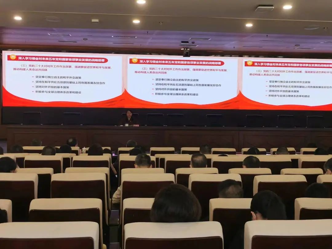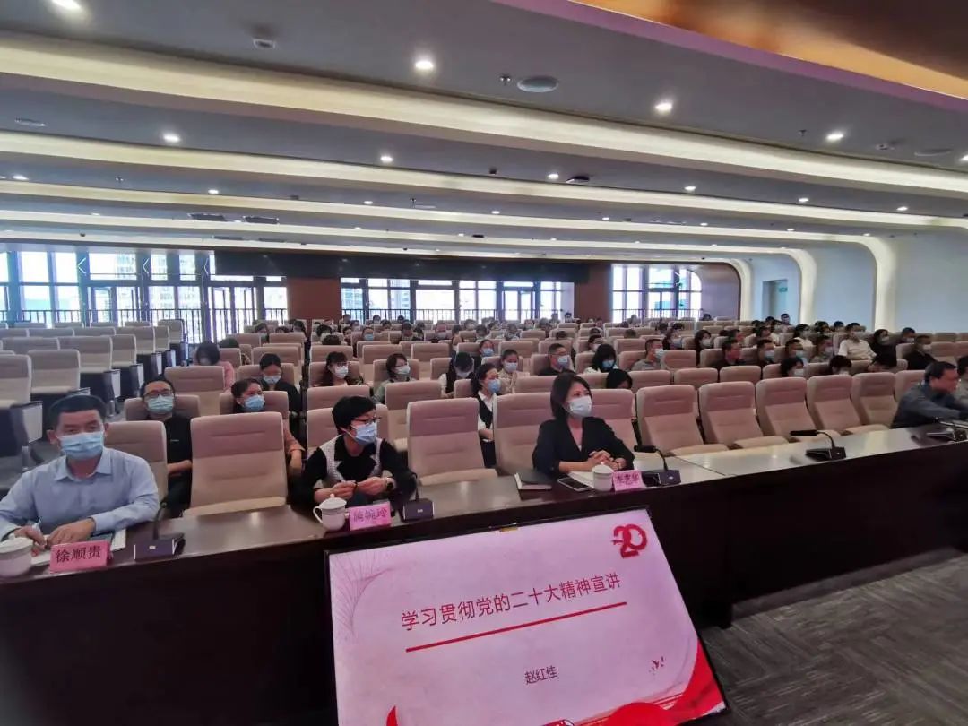 黨委書記趙紅佳作學習貫徹黨的二十大精神專題黨課宣講。黨課以黨的二十大報告為主線,圍繞黨的二十大的重大意義、黨的二十大的主題、以黨的二十大精神推動實踐指導工作等9個方面逐一展開,讓大家進一步深刻領會黨的二十大精神。