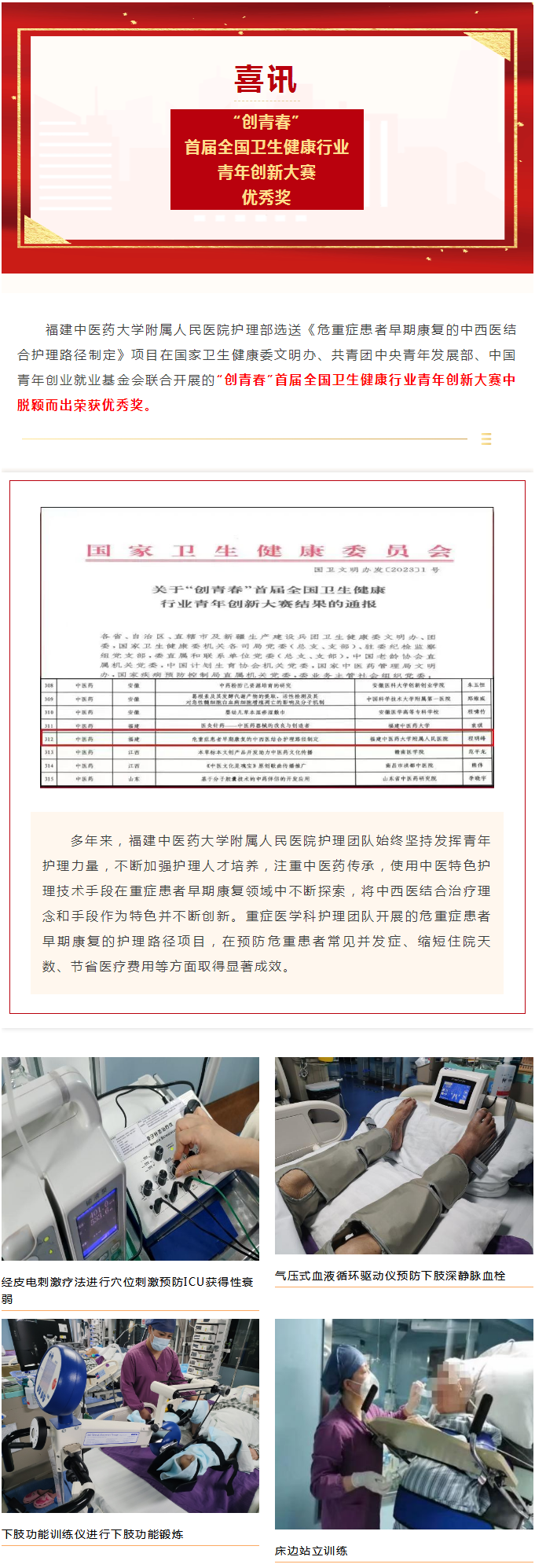 喜報!福建中醫(yī)藥大學(xué)附屬人民醫(yī)院榮獲“創(chuàng)青春”首屆全國衛(wèi)生健康行業(yè)青年創(chuàng)新大賽優(yōu)秀獎
