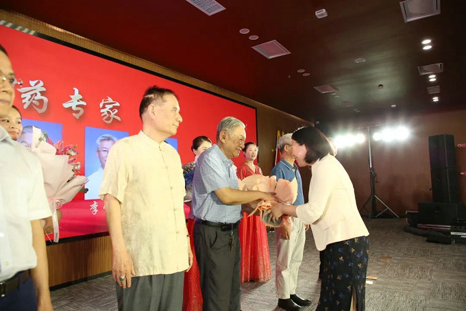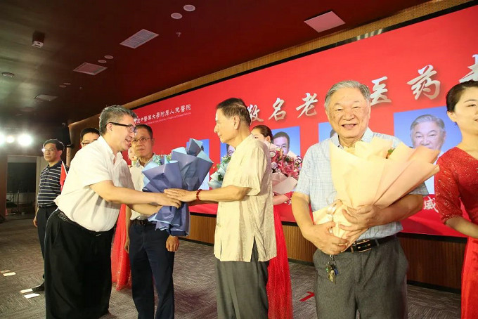 趙紅佳書記 、陳捷院長向名老中醫(yī)專家獻(xiàn)花