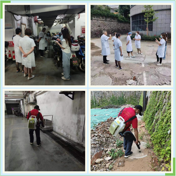 院感管理部和后勤后保障處實(shí)地走訪蚊蟲隱患點(diǎn)指導(dǎo)消殺工作