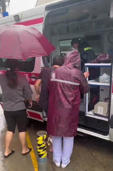 昨晚急診科一線、二線出車,醫(yī)務人員被困在路上,積水不斷上漲,車輛無法前行,醫(yī)務人員選擇徒步前行,連續(xù)奮戰(zhàn)到天亮。