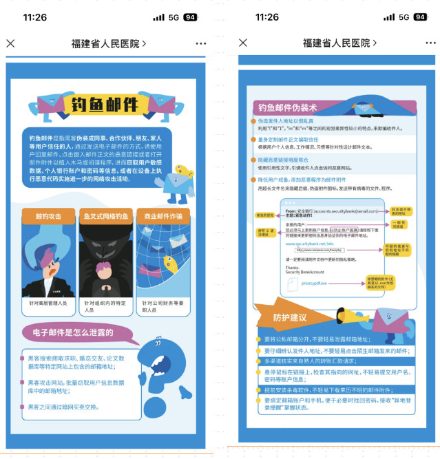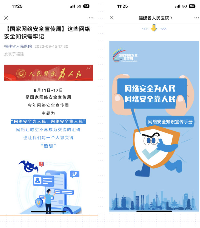 9月15日,我院通過(guò)院內(nèi)公眾號(hào)進(jìn)行線上宣傳,介紹了當(dāng)前網(wǎng)絡(luò)安全中的常見(jiàn)問(wèn)題、常見(jiàn)的網(wǎng)絡(luò)攻擊活動(dòng)、網(wǎng)絡(luò)安全防護(hù)建議等網(wǎng)絡(luò)安全知識(shí),為院內(nèi)職工提供了便捷的學(xué)習(xí)方式,以提升院內(nèi)職工的網(wǎng)絡(luò)安全防范能力。
