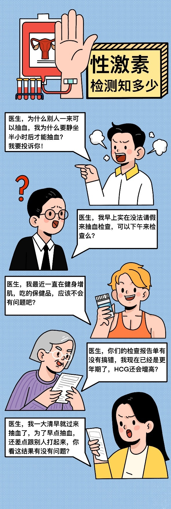 激素的分泌受個(gè)體狀態(tài)因素影響很大。恐懼、緊張、激動(dòng)、興奮、呼吸急促等可導(dǎo)致激素分泌量增加。運(yùn)動(dòng)后能量消耗及暴熱后大量出汗會(huì)導(dǎo)致體液大量丟失,性激素水平相對(duì)升高;睡眠、寒冷狀態(tài)時(shí)激素分泌低,導(dǎo)致檢測(cè)水平偏低。因此,激素檢測(cè)要求靜坐30分鐘,排除個(gè)體情緒因素影響后方可抽血。