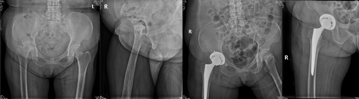 許×,女,66歲,嚴重股骨頭壞死并髖骨關(guān)節(jié)炎行人工全髖關(guān)節(jié)置換術(shù),術(shù)后3天下地,1周上下樓梯。