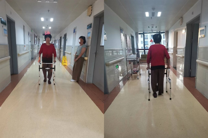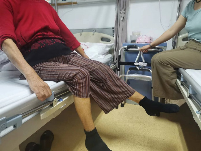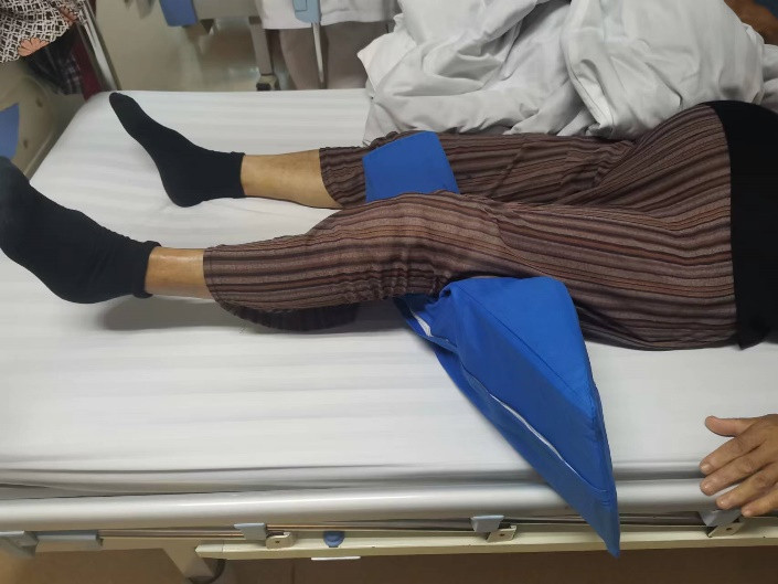 蔡××,女,61歲,單側(cè)膝關(guān)節(jié)骨關(guān)節(jié)炎行膝關(guān)節(jié)單髁置換術(shù),術(shù)后第2天即下地行走。