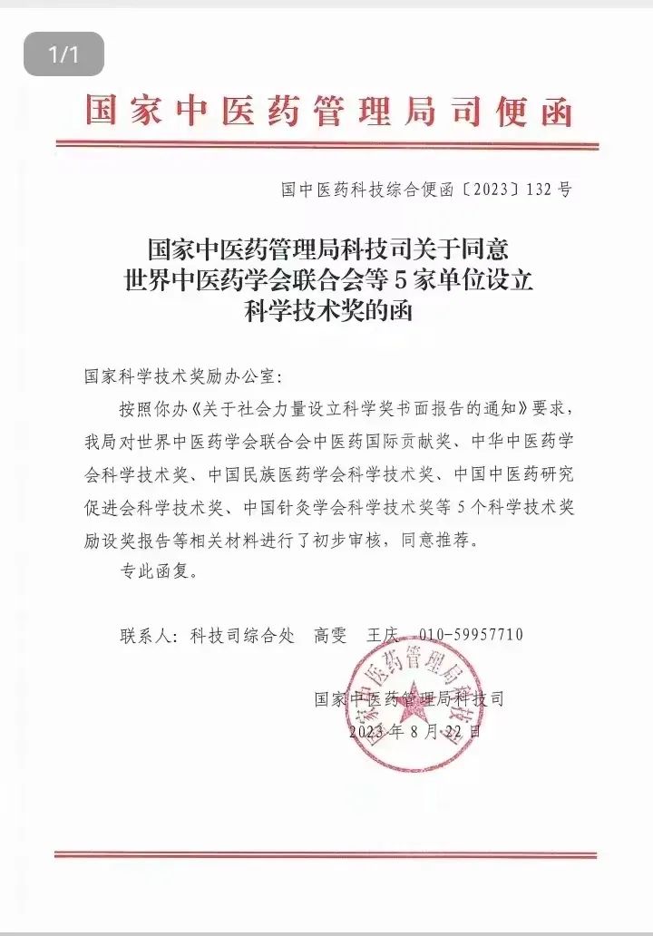 2023年12月9日,由中國(guó)民族醫(yī)藥學(xué)會(huì)舉辦的2022、2023年度科學(xué)技術(shù)獎(jiǎng)、學(xué)術(shù)著作獎(jiǎng)?lì)C獎(jiǎng)大會(huì)在北京隆重舉行。中國(guó)民族醫(yī)藥學(xué)會(huì)是國(guó)家中醫(yī)藥管理局批復(fù)同意設(shè)立科學(xué)技術(shù)獎(jiǎng)的5家單位之一。