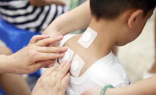 貼敷大椎、肺俞穴位,清熱宣肺平喘;