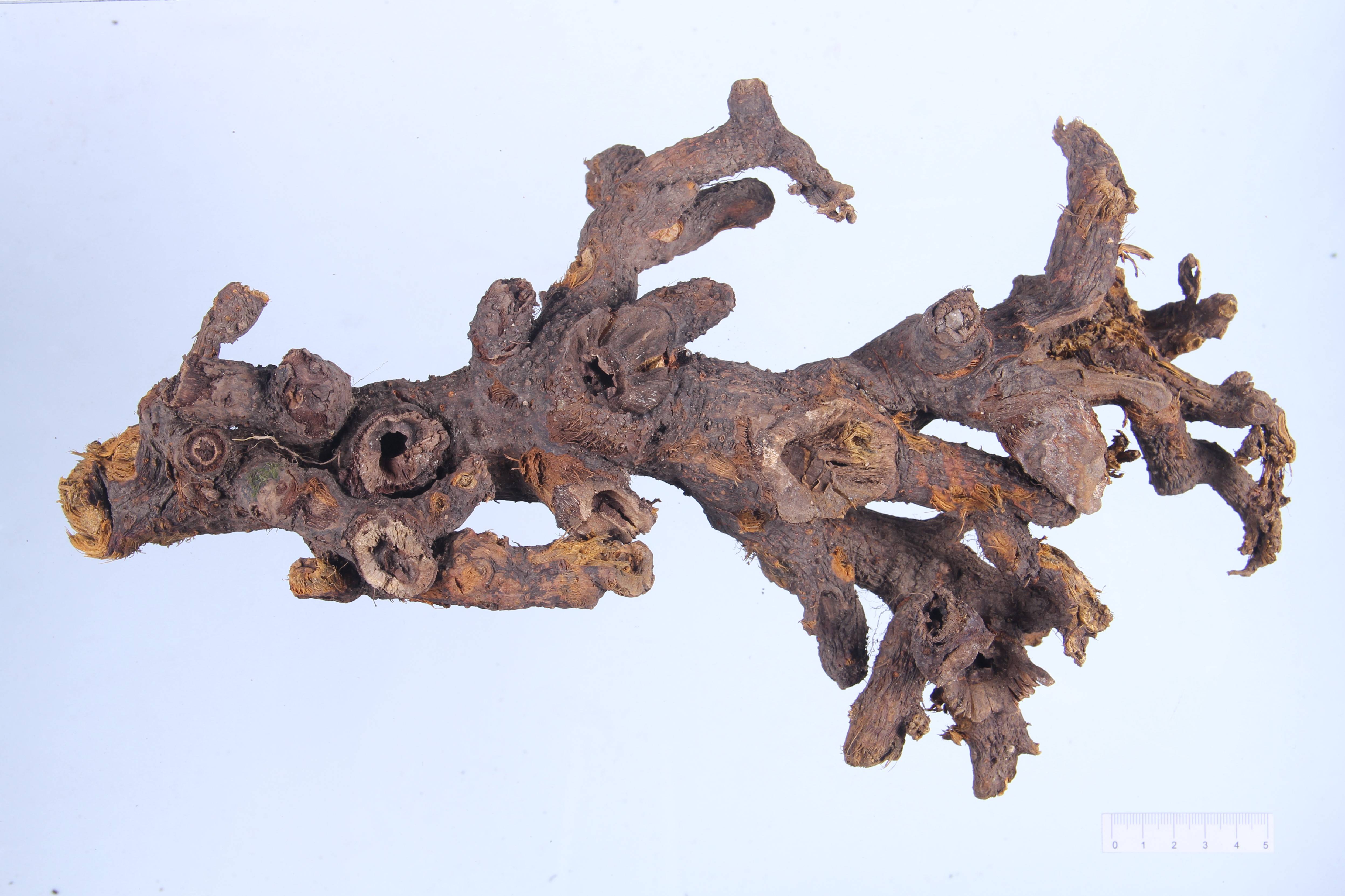 【性狀】本品多為圓柱形短段或不規(guī)則厚片,長(zhǎng)1~7cm,直徑0.5~2.5cm。外皮棕褐色,有縱皺紋及須根痕,切面皮部較薄,木部寬廣,棕黃色,射線放射狀,皮部與木部較易分離。根莖髓中有隔或呈空洞狀。質(zhì)堅(jiān)硬。氣微,味微苦、澀。