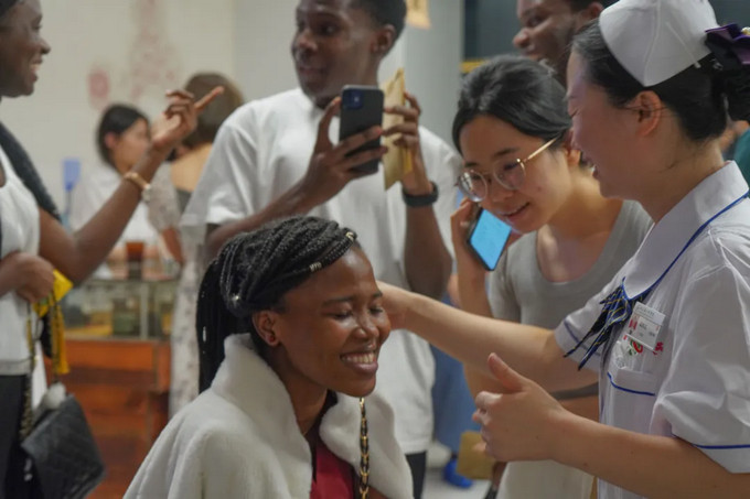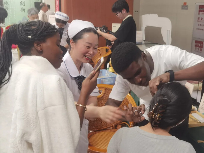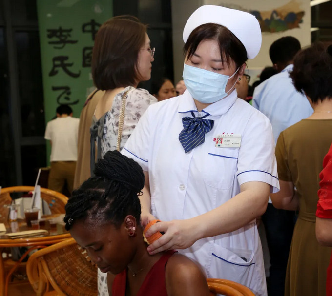 手起針落,來自福建醫(yī)科大學的尼日利亞籍學生杜威再抬起頭時,直夸"舒服"。在體驗完所有中醫(yī)特色療法后,他還饒有興趣地請教李學麟主任醫(yī)師"李氏飛針"的"奧妙"。