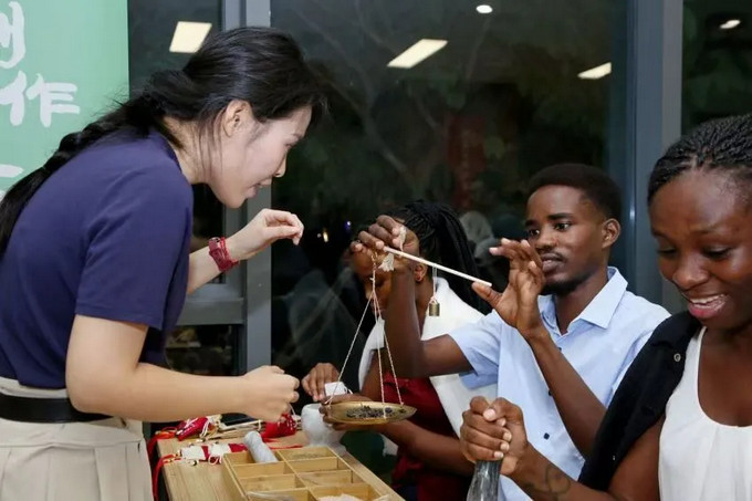 體驗環(huán)節(jié)結束后,高桃花興奮地說,收了五六個外國"徒弟",學生們反饋"不難,好學"。